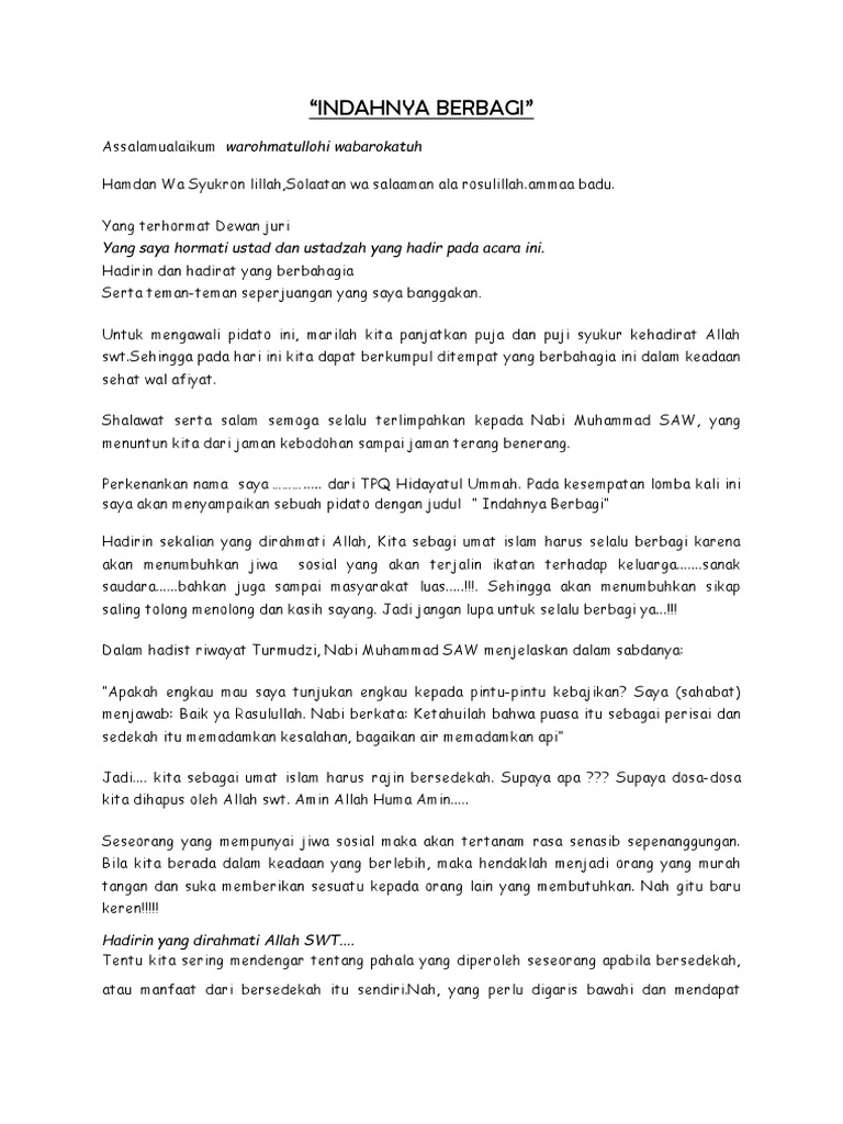 This is indahnya berbagi di bulan ramadhan by reza zp on vimeo, the home for high quality videos and the people who love them. Sholat adalah ibadah yang paling utama untuk mendekatkan diri kepada allah, sebelum mengerjakan sholat baik itu sholat fardhu maupun sunnah kita diperintahkan untuk terbebas. Hadistbacaan dan arti indahnya berbagi / bukan muh. Berbagi disini jangan selalu diartikan memberi materi atau uang ke orang lain, tapi berbagilah dengan apa yang kamu bisa dan yang kamu. Sekarang aku mengerti kenapa aku tak pernah mersakan kekhusyukan dalam shalat.